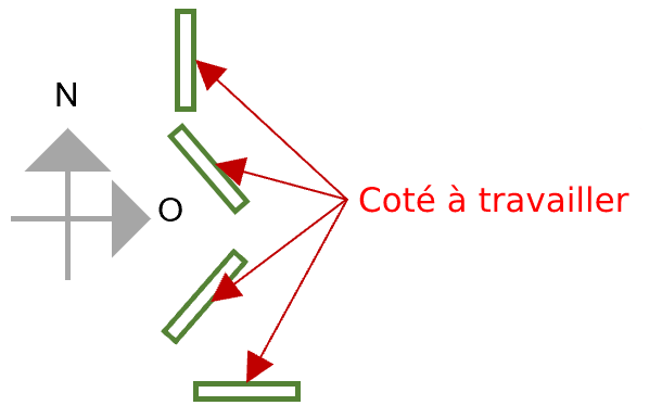 - Nord pour les rangées orientées Est-Ouest